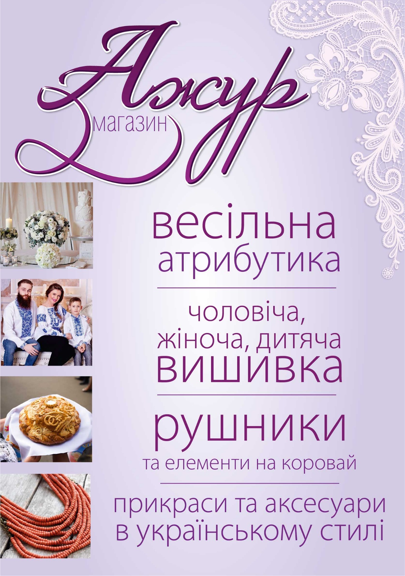В нашому магазині для Вас запропоновано великий вибір вишитого одягу, прикрас і аксексуарів в українському стилі та весільної атрибутики.